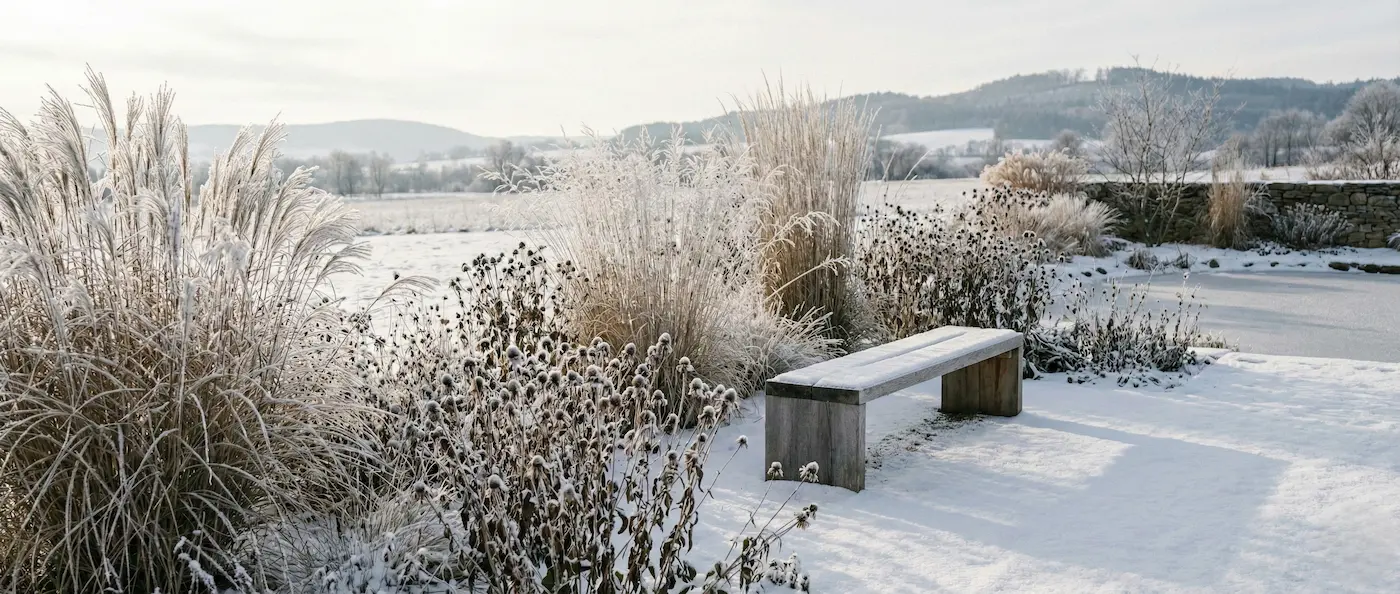 - La escarcha sobre las gramíneas: Un fenómeno efímero que transforma el jardín en una obra de arte helada.