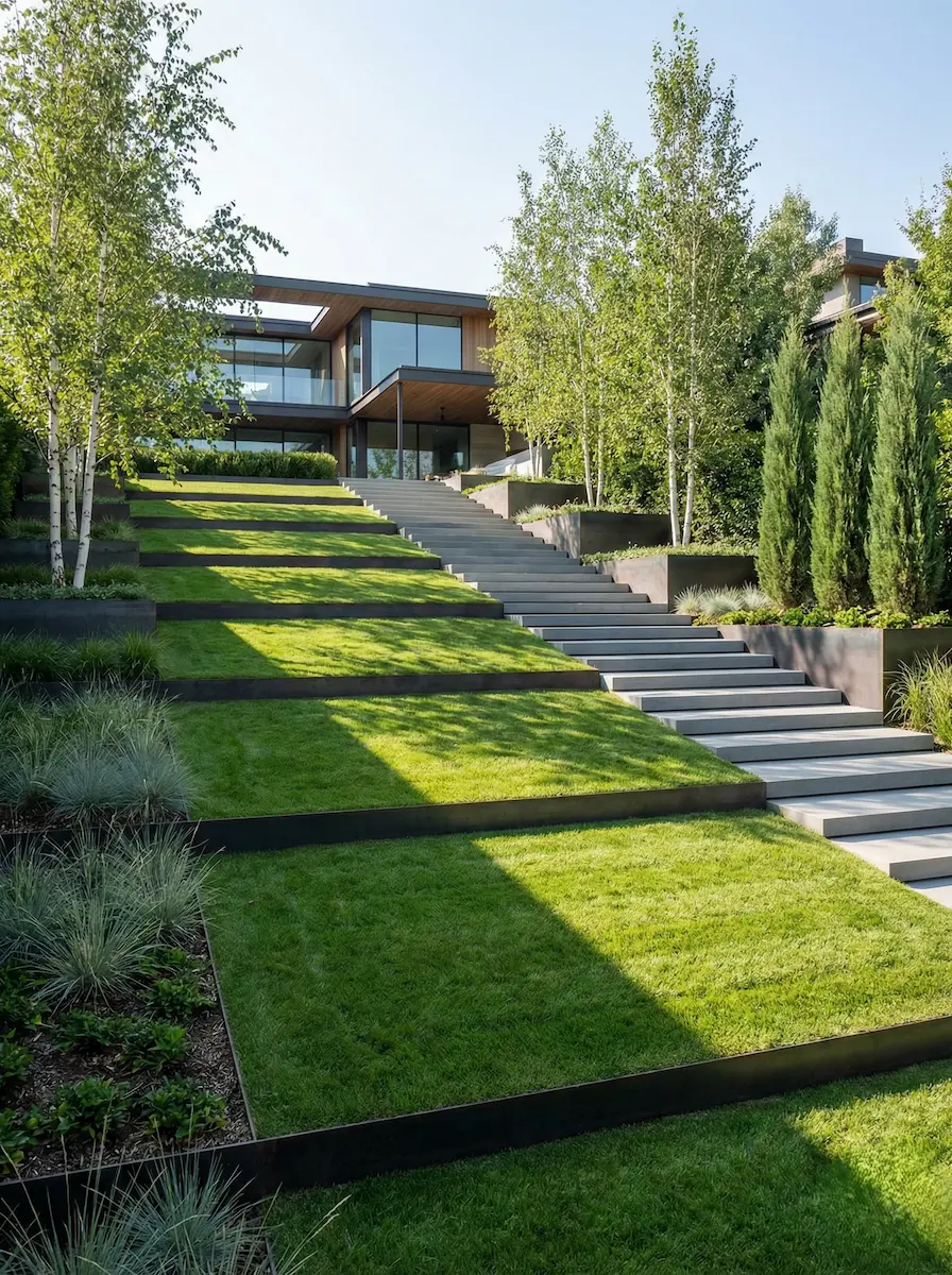 Cómo Dominar los Desniveles: 3 Soluciones de Paisajismo para Terrenos Inclinados